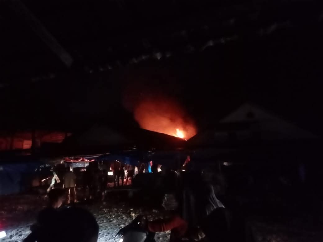 10 Kios semi permanen pasar terpadu pajak pagi Aceh Tenggara ludes terbakar. Waspada.id/Seh Muhammad Amin