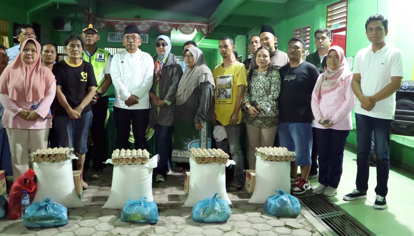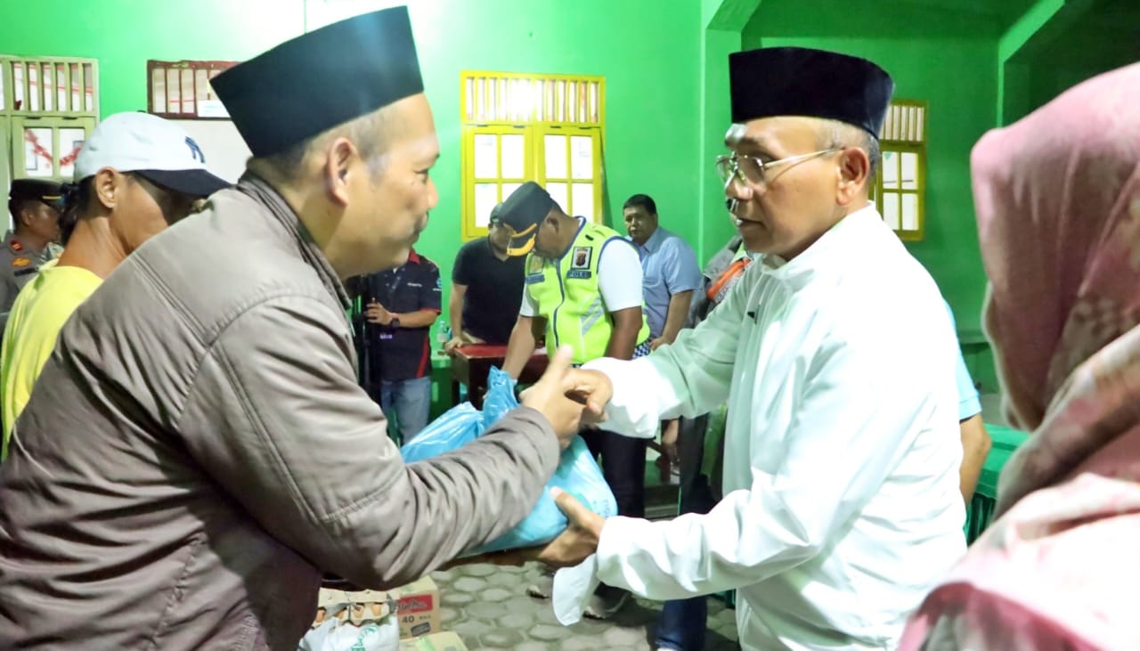Bupati Simalungun saat menyerahkan secara simbolis bantuan sembako kepada para korban kebakaran, Senin (18/8) malam.(Waspada.id/Ist)
