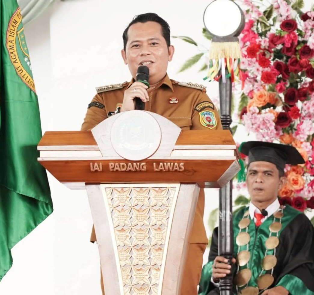 Dalam sambutannya, Bupati mengucapkan selamat kepada segenap wisudawan. “Pemerintah dan masyarakat Padanglawas menanti kontribusi dan pengabdian saudara untuk bersama-sama mewujudkan Kabupaten Padanglawas Maju (mandiri, amanah, jaya dan unggul),” ujarnya.
