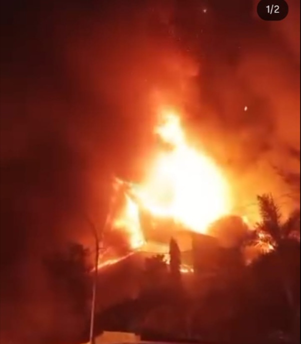 Suasana Mapolda Metro Jaya, massa masih berkumpul di semua pintu atau gerbang markas polisi itu malam ini dan dari kejauhan tampak api sedang berkobar. tangkapan layar video warga