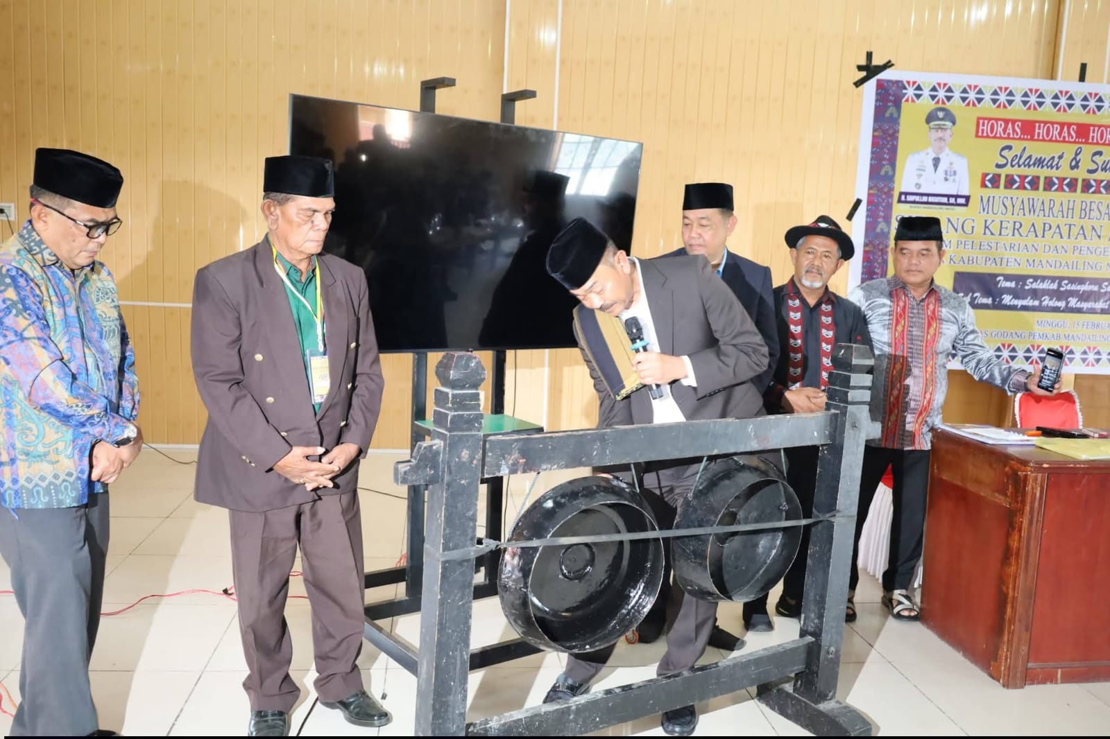 PANYABUNGAN (Waspada.id): H. Saipullah Naaution bergelar Sutan Kumala Parhimpunan Naposo yang saat ini menjabat sebagai Bupati Mandailing Natal (Madina) membuka musyawarah besar (mubes) Sidang Kerapatan III Forum Pelestarian dan Pengembangan Adat Budaya (FPPAB) di Aula Bagas Godang, Saba Purba, Panyabungan, pada Minggu (15/2/2026).