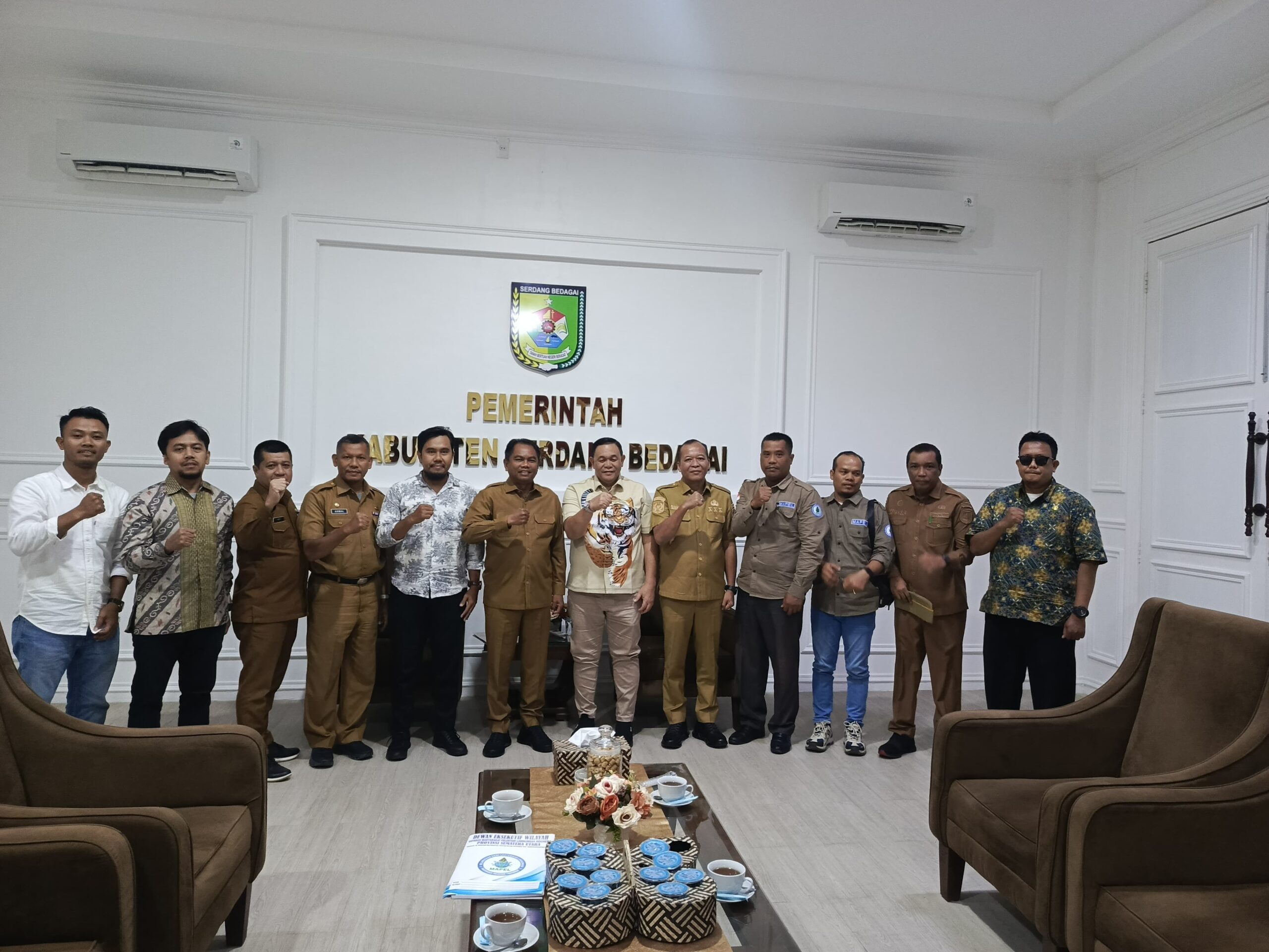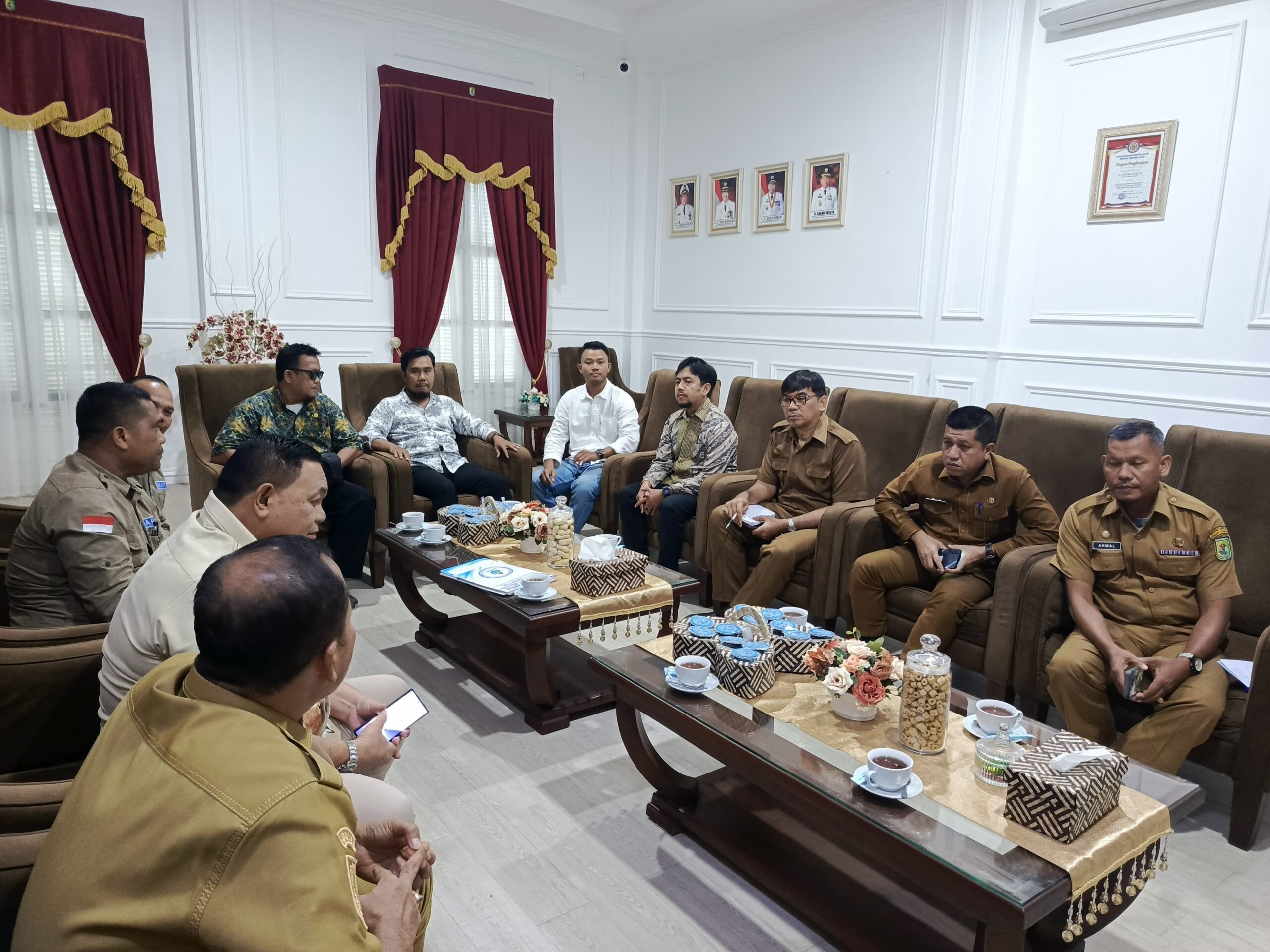 Pantauan Waspada.id, Bupati Sergai Darma Wijaya didampingi Sekda, Kadis Lingkungan Hidup dan Staf Ahli Bupati menyambut baik kehadiran Dahnil Ginting di kantornya. Mereka terlihat akrab satu sama lain.
