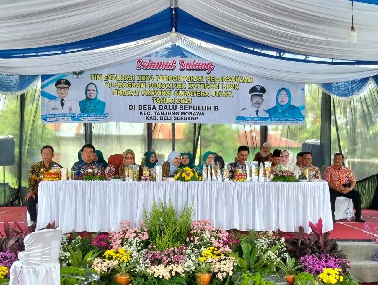 TANJUNGMORAWA (Waspada.id): Desa Dalu X B, Kecamatan Tanjungmorawa menjadi utusan Kabupaten Deliserdang dalam mengikuti Evaluasi Desa/Kelurahan Percontohan Pelaksanaan 10 Program Pokok Pemberdayaan Kesejahteraan Keluarga (PKK) Kategori Usaha Peningkatan Pendapatan Keluarga Sejahtera (UP2K) Tingkat Provinsi Sumatera Utara (Sumut) Tahun 2025.
