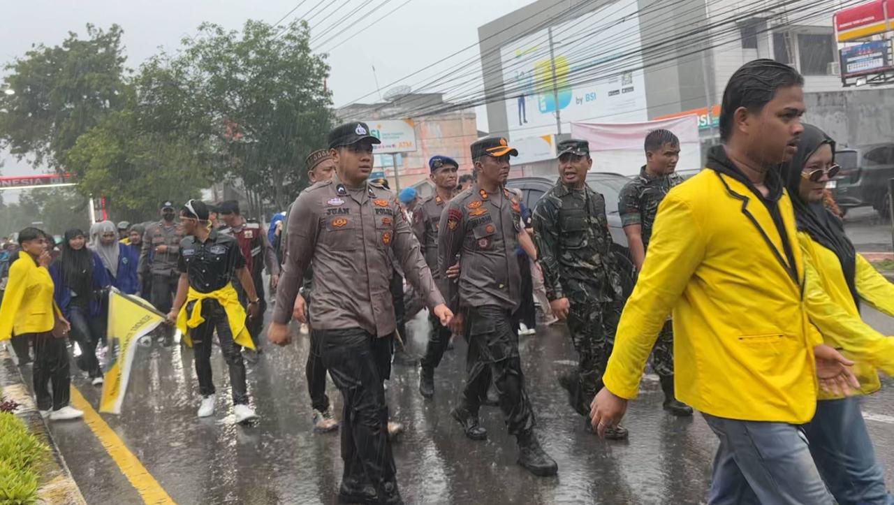 Selanjutnya, di tengah hujan deras dan angin, mahasiswa bergerak bersama Kapolres Langsa, AKBP Mughi Prasetyo Habrianto, SIK didampingi Komandan Kodim 0104/Aceh Timur, Letkol Inf Novi Widyanto, S.E untuk jalan bersama menuju gedung DPRK Langsa dengan membawa dua tuntutan yaitu Bubarkan DPR dan Reformasi Polri.