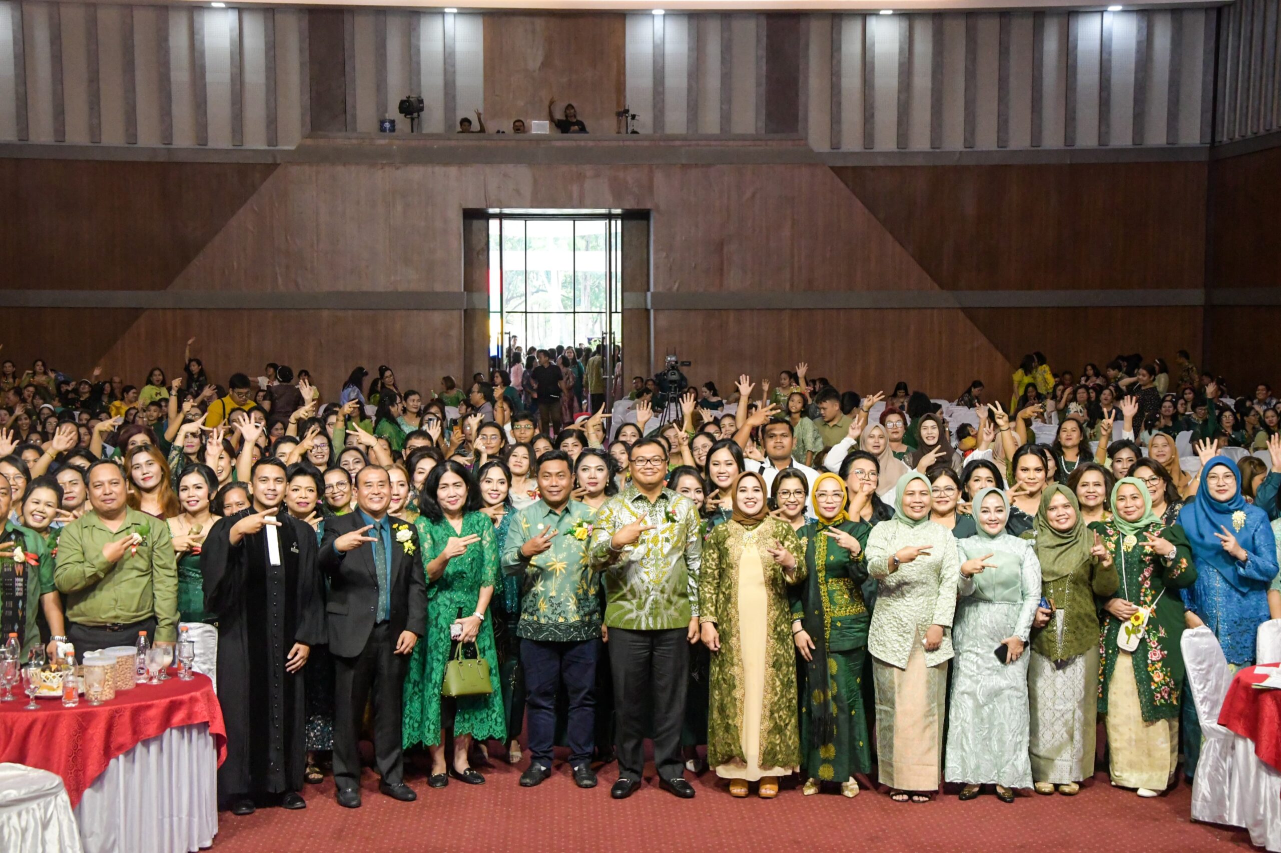 Bupati Deliserdang, Asri Ludin Tambunan bersama Wabup Lom Lom Suwondo menghadiri Perayaan Natal Gabungan Dinas Kesehatan dan RSUD Kabupaten Deliserdang di Graha Bhineka Perkasa Jaya, Lubukpakam, Kamis (18/12/25).Waspada.id/Ist