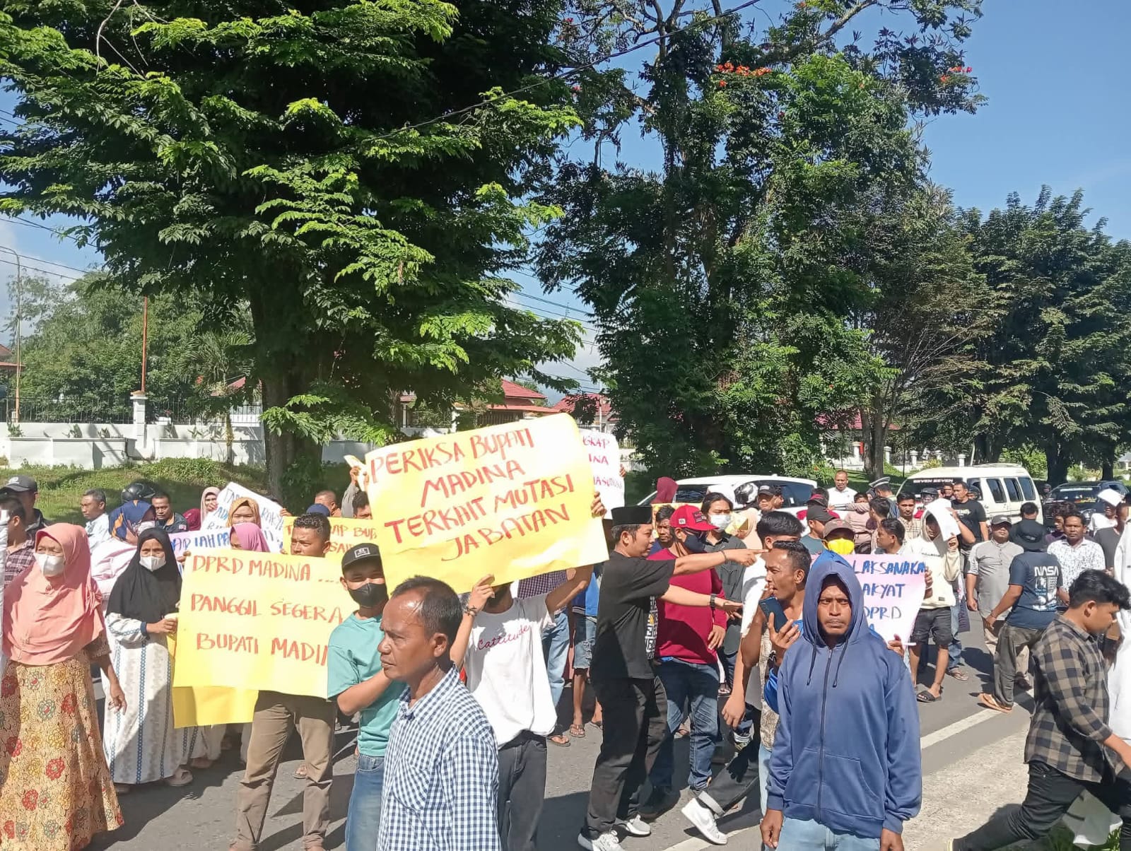 Mereka menyampaikan sembilan butir pernyataan sikap dengan tuduhan dibohongi dan difitnah oleh Bupati H. Saipullah Nasution, SH.MM. Dalam aksi tersebut, peserta sempat membakar ban di lokasi.