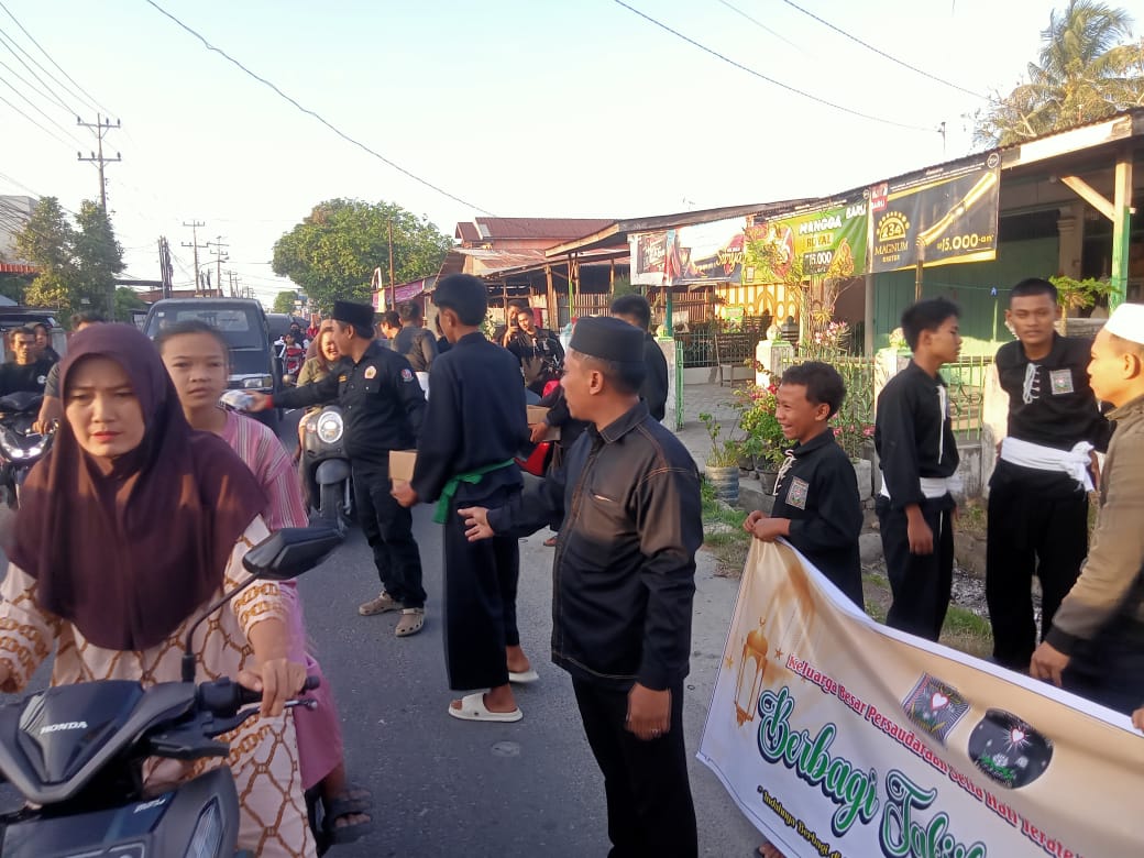 BERINGIN (Waspada.id): Ikatan Pencak Silat Indonesia (IPSI) Kecamatan Beringin bersama Persaudaraan Setia Hati Terate (PSHT) Beringin menggelar kegiatan sosial dengan membagikan 600 paket takjil dan sembako kepada kaum duafa di depan Aula Desa Sidodadi Ramunia, Kecamatan Beringin, Minggu (8/3/26).