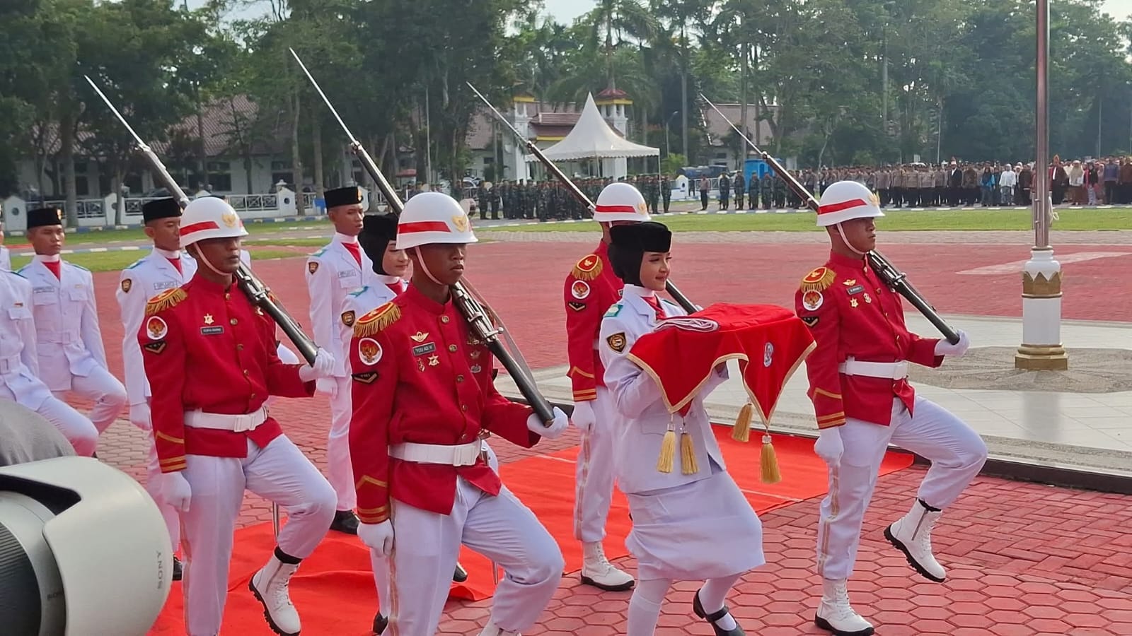 Masih di lokasi yang sama, Bupati bersama seluruh undangan kemudian mengikuti detik-detik proklamasi secara virtual yang terpusat di Istana Merdeka Jakarta, dengan Presiden Prabowo Subianto bertindak sebagai inspektur upacara.
