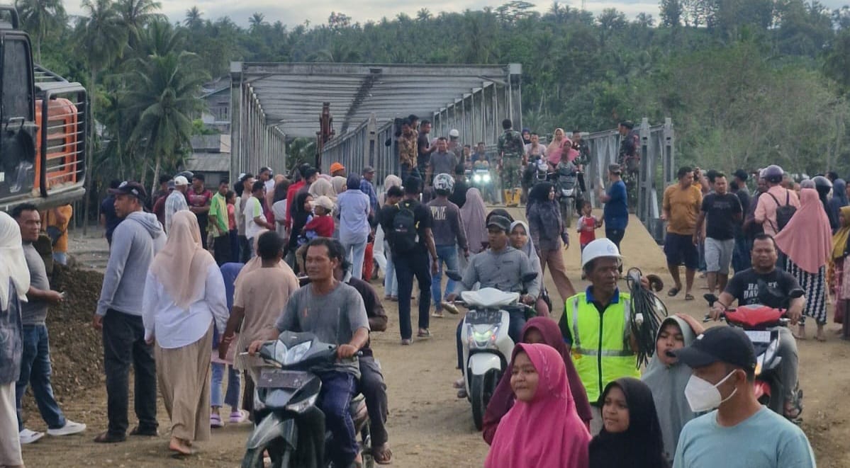 BIREUEN (Waspada.id): Jembatan bailey (Darurat), Jalan Lintas Sumatera Teupin Mane Juli menghubungkan Bireuen dengan Bener Meriah dan Aceh Tengah (Takengon) dibuka sekira pukul 16:20 WIB, sudah dapat dilalui warga pada Minggu (14/12). sore.