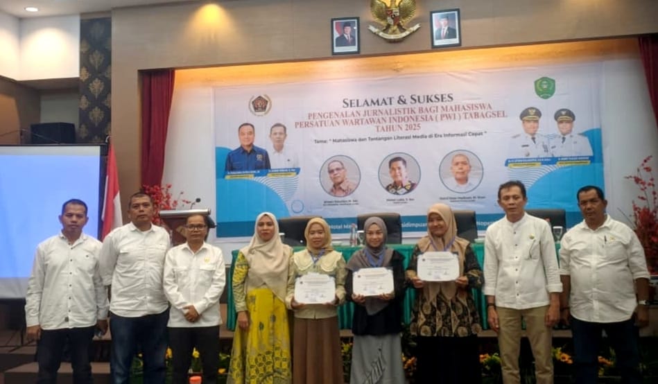 Pengenalan jurnalistik yang digelar PWI Tabagsel dengan tema “Mahasiswa dan Tantangan Literasi Media di Era Informasi Cepat” yang digelar di Emerald Hall Hotel Mega Permata Padangsidimpuan menghadirkan Hairul Iman Hasibuan, M.I.Kom, Ikhwan Nasution, M.Sos dan Mohot Lubis, S.Sos sebagai pemateri.