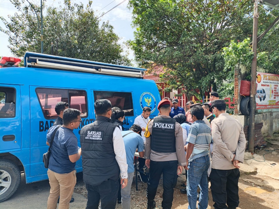 Sopir angkutan umum menjalani pemeriksaan air seni oleh Polres P.Sidimpuan dan BNNK Tapsel. (Waspada.id/Ist)