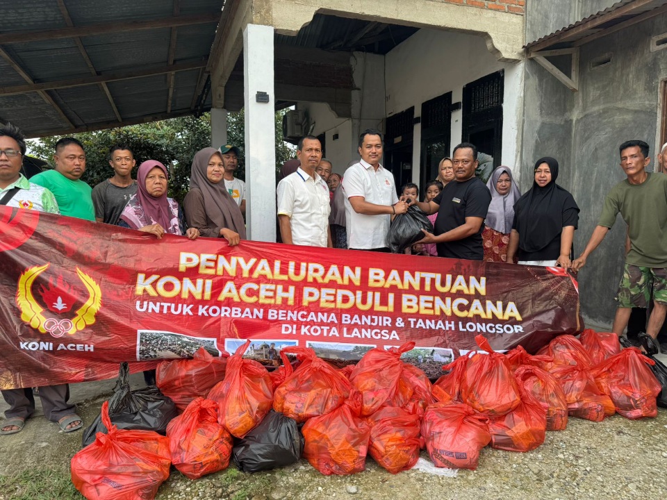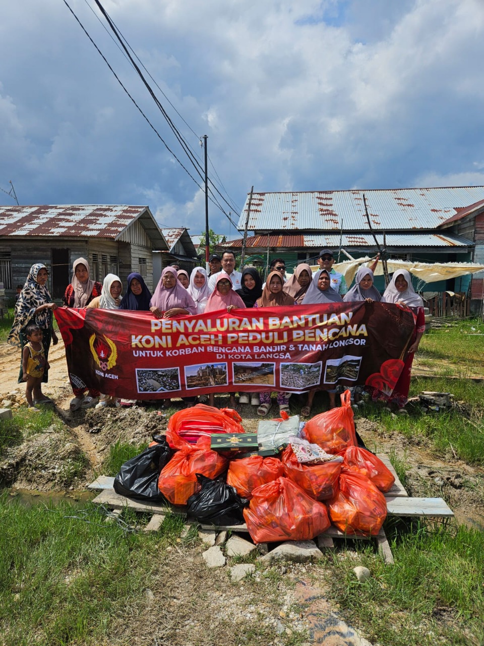 LANGSA (Waspada.id): Komite Olahraga Nasional Indonesia (KONI) Kota Langsa menyalurkan bantuan sembako dan pengobatan gratis dari KONI Aceh Peduli Bencana untuk warga terdampak banjir dan tanah longsor di Kota Langsa, Sabtu (3/1).