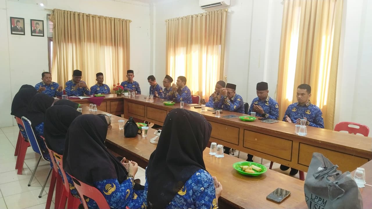 Pegawai Kecamatan Ingin Jaya mengikuti pengajian rutin di ruang rapat Kantor Camat Ingin Jaya, di Lambaro, Jumat (17/4/2026). Waspada.id/IstPengajian berlangsung khidmat di ruang pertemuan kantor camat. Para peserta, yang terdiri dari pegawai laki-laki dan perempuan, tampak kompak mengenakan seragam Korpri.
