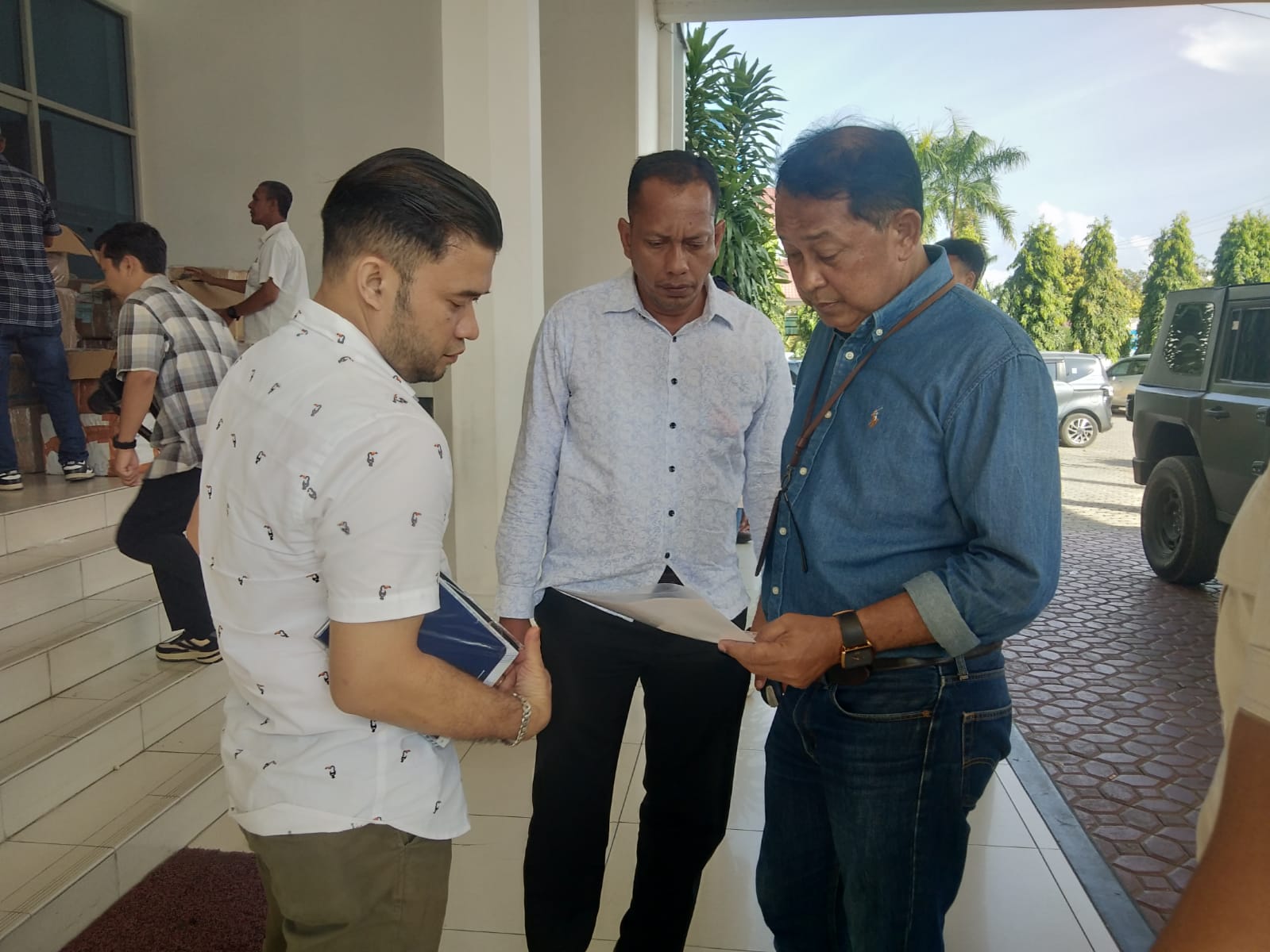 Wakil Wali Kota Lhokseumawe Husaini menerima penyerahan bantuan pakaian beribadah dari PT. PGE di halaman Kantor Wali Kota Lhokseumawe, Jumat (13/2). Waspada.id/Zainuddin Abdullah