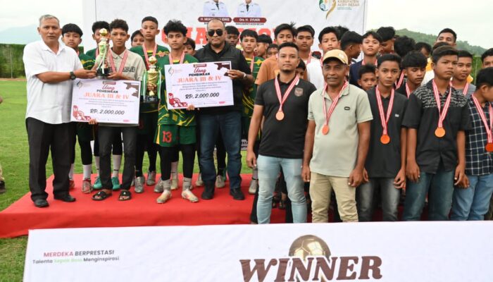 Bupati Aceh Besar diwakili Kepala Dinas Pariwisata, Pemuda dan Olahraga (Disparpora) Aceh Besar, Abdullah, SSos menutup Turnamen Sepak Bola Gala Siswa tingkat SMP se-Aceh Besar yang memperebutkan Piala Bupati Aceh Besar H. Muharram Idris (Syech Muharram) dalam rangka HUT ke-69 Kabupaten Aceh Besar Tahun 2025.
