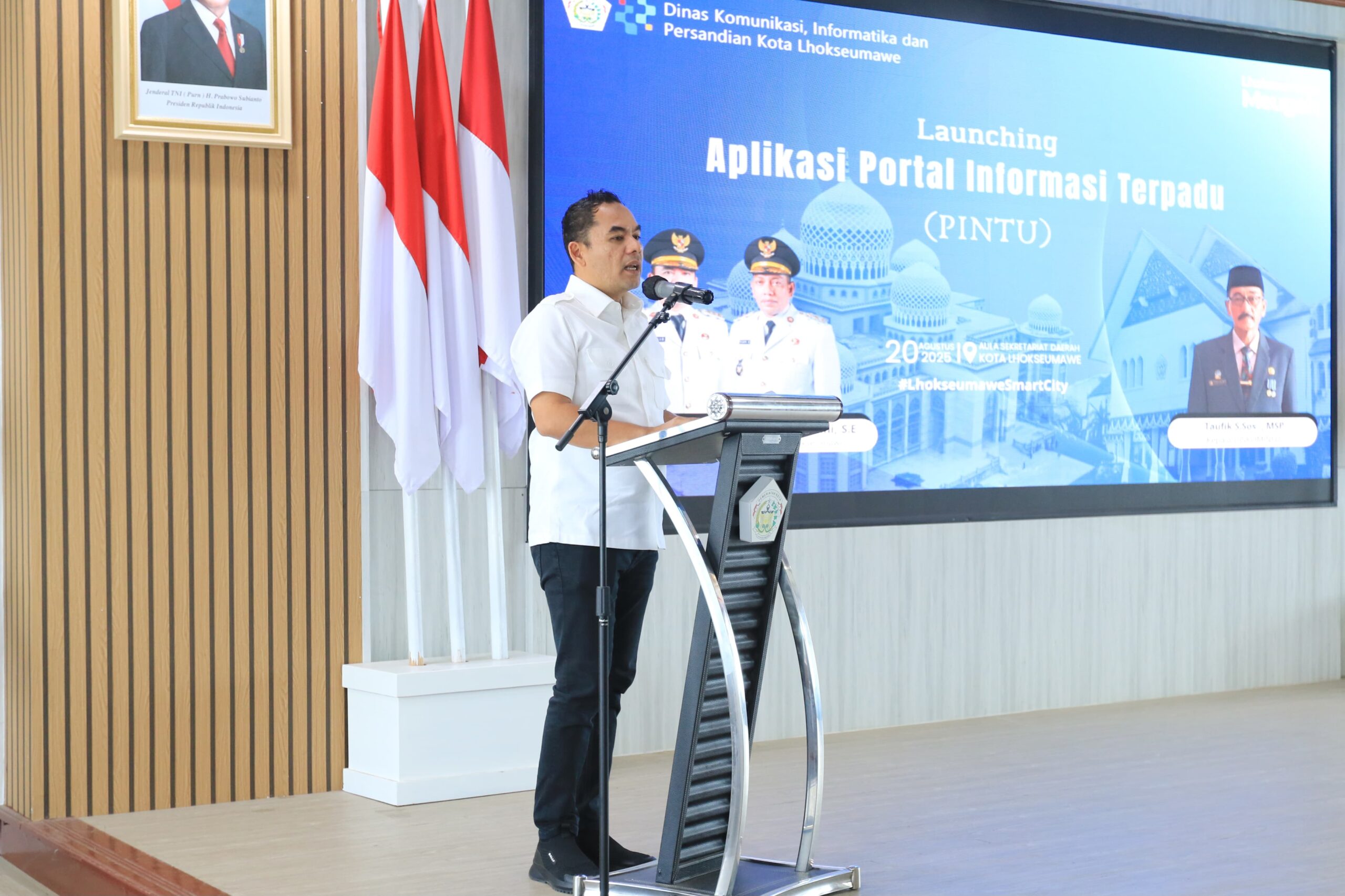 LHOKSEUMAWE (Waspada.id): Untuk mewujudkan transparansi publik, Walikota Lhokseumawe Sayuti. A. Bakar bersama Dinas Komunikasi, Informatika, dan Persandian (Diskominfo) resmikan peluncuran Aplikasi Portal Informasi Terpadu (PINTU). Kegiatan ini berlangsung di Aula Kantor Wali Kota Lhokseumawe, Rabu (20/8).