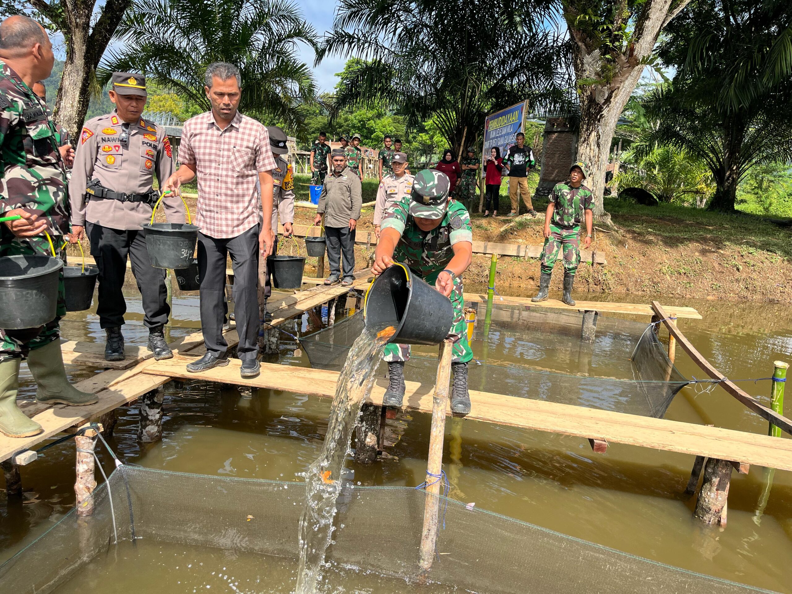 Danramil 17/Geumpang Kapten, Czi Zufri dalam sambutannya menyampaikan apresiasi atas inisiatif Yonif TP-857/GG dalam budidaya ikan air tawar sebagai bagian dari upaya meningkatkan kesejahteraan masyarakat, dan sejurus dengan itu mendukung ketahanan pangan lokal.
