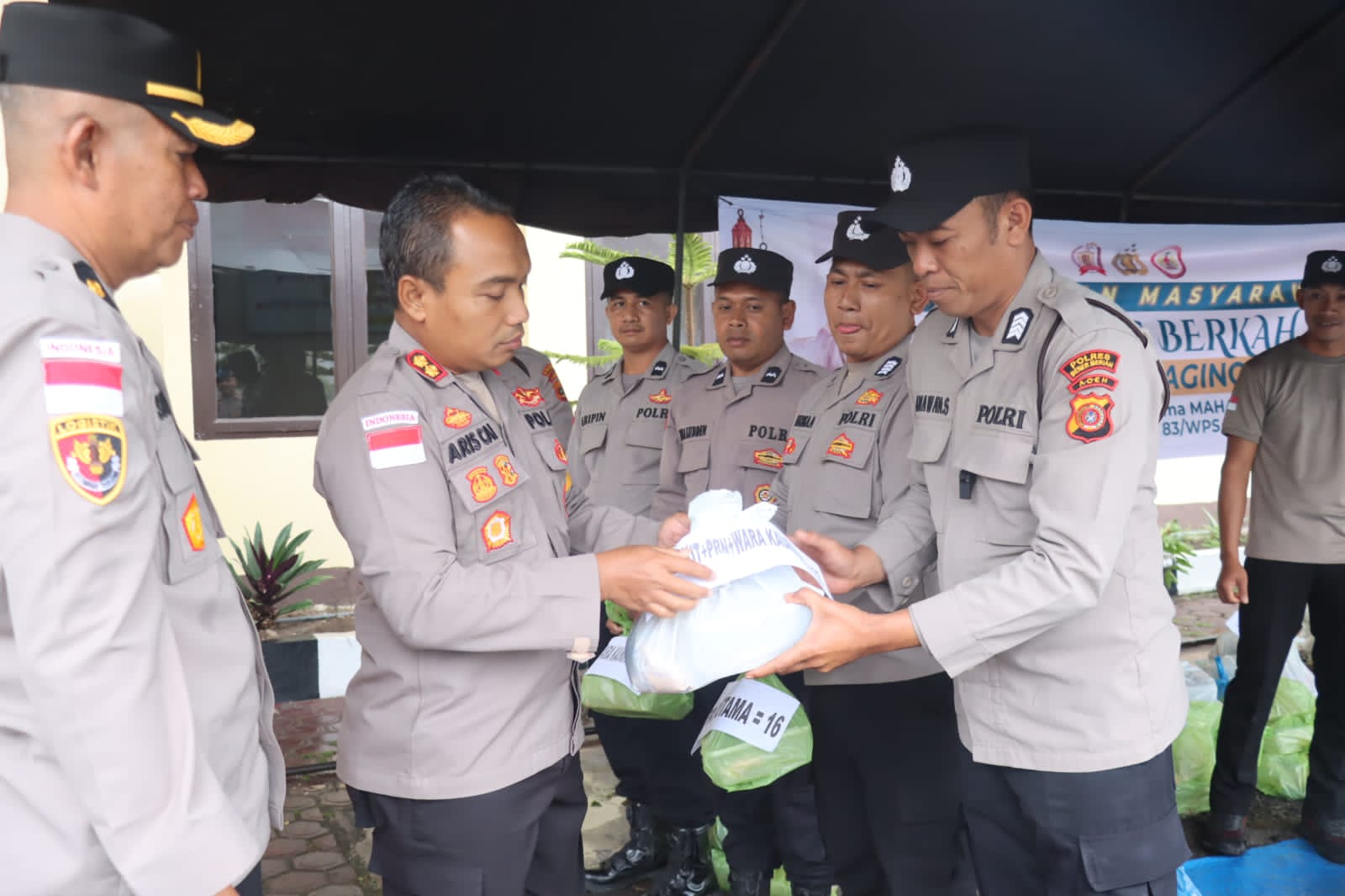 Penyaluran bantuan dipusatkan di Mapolres dan dipimpin langsung Kapolres Aris Cai Dwi Susanto, didampingi Wakapolres Syabirin beserta para pejabat utama.