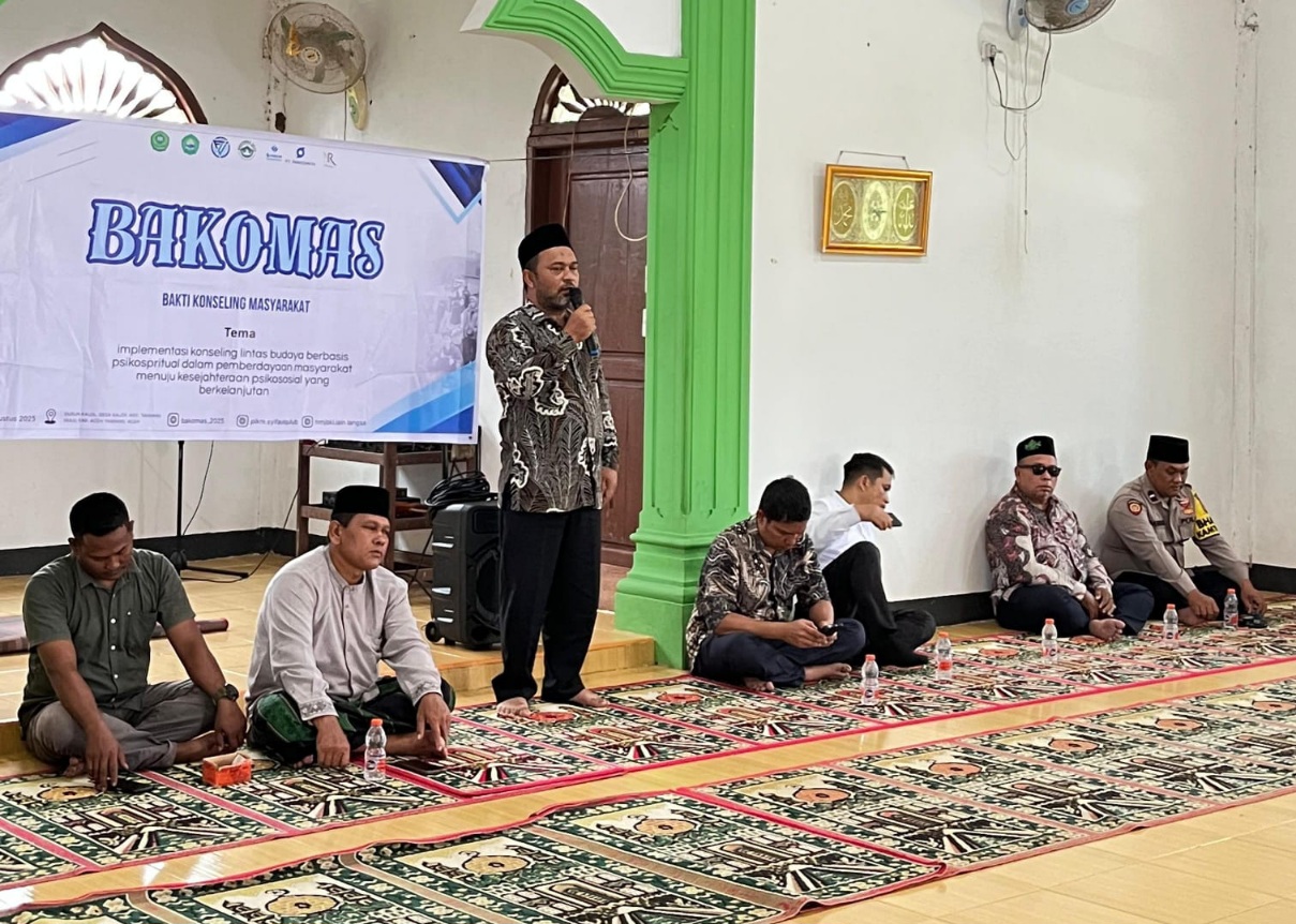 TAMIANG (Waspada.id): Bakti Konseling Masyarakat (BAKOMAS) Program Studi Bimbingan Konseling Islam (BKI), Fakultas Ushuluddin, Adab, dan Dakwah IAIN Langsa di mushalla Desa Kaloy, Kecamatan Pulau Tamiang Hulu, Kabupaten Aceh Tamiang resmi dibuka, Jumat (24/10).