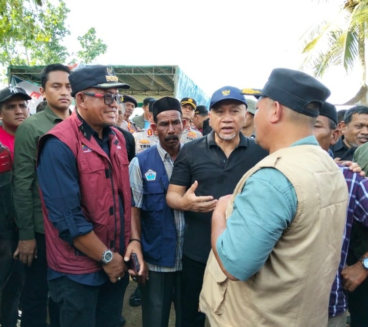Camat Lapang, Muzakir, Sabtu (13/12) melaporkan kondisi masyarakatnya pasca dilanda banjir bandang kepada Menteri Koordinator Pangan, Zulkifli Hasan. Waspada.id/Maimun AsnawiDitanya bagaimana keterlibatan atau seserius apa penanganan pascabanjir yang melanda Aceh oleh pemerintah pusat, Menteri Koordinator Pangan ini menyebutkan, Presiden Prabowo Subianto sudah dua kali berkunjung ke Aceh setelah terjadinya banjir bandang. Dan semua menteri sudah turun ke lapangan untuk melakukan peninjauan sambil membawa bantuan kepada warga yang terdampak.