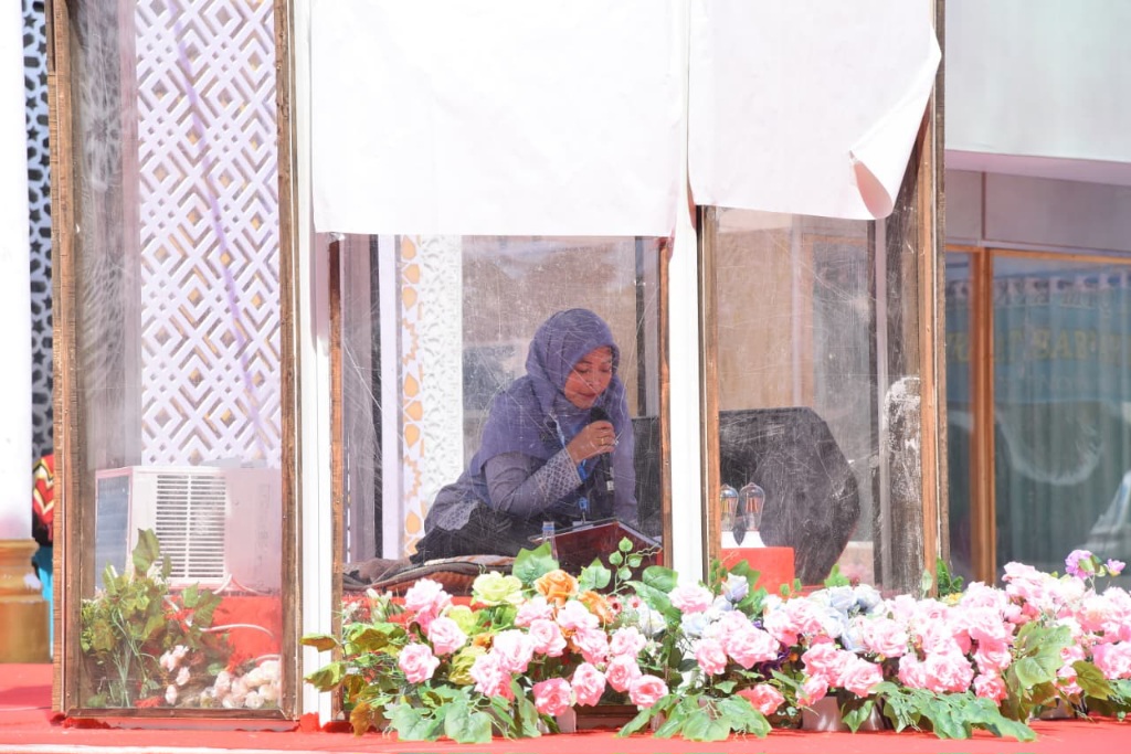 Qariah dari Kafilah Aceh Besar tampil pada MTQ XXXVII tingkat Provinsi Aceh tahun 2025, di Kabupaten Pidie Jaya, Selasa (4/11). Waspada.id/Ist“Tidak hanya itu, peserta kita dari cabang fahmil quran putri juga akan melanjutkan perjuangan mereka di babak semifinal hari ini. Kita tentu berharap mereka bisa tampil maksimal dan lolos ke babak final,” jelas Farhan.