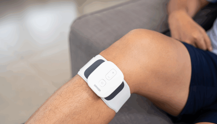 OMRON Knee TENS HV-F710 membantu menghambat sinyal nyeri, melancarkan sirkulasi darah, dan merelaksasi otot untuk meredakan nyeri lutut secara efektif