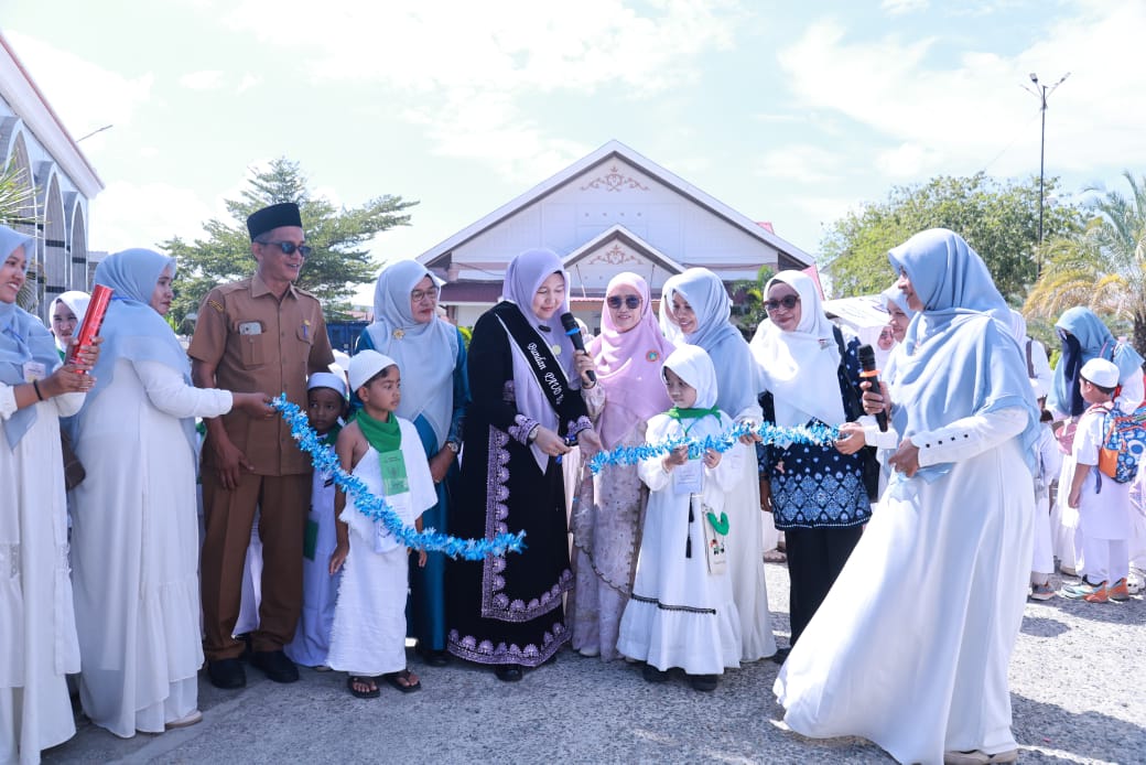BANDA ACEH (Waspada.id): Bunda Pendidikan Anak Usia Dini (PAUD) Aceh Besar, Hj. Rita Mayasari, resmi membuka kegiatan Manasik Haji Cilik 2026 tingkat Kabupaten Aceh Besar yang digelar di Asrama Haji, Banda Aceh, Senin (13/4/2026). Kegiatan ini diikuti hampir 400 anak dari 27 lembaga PAUD yang berasal dari berbagai kecamatan.