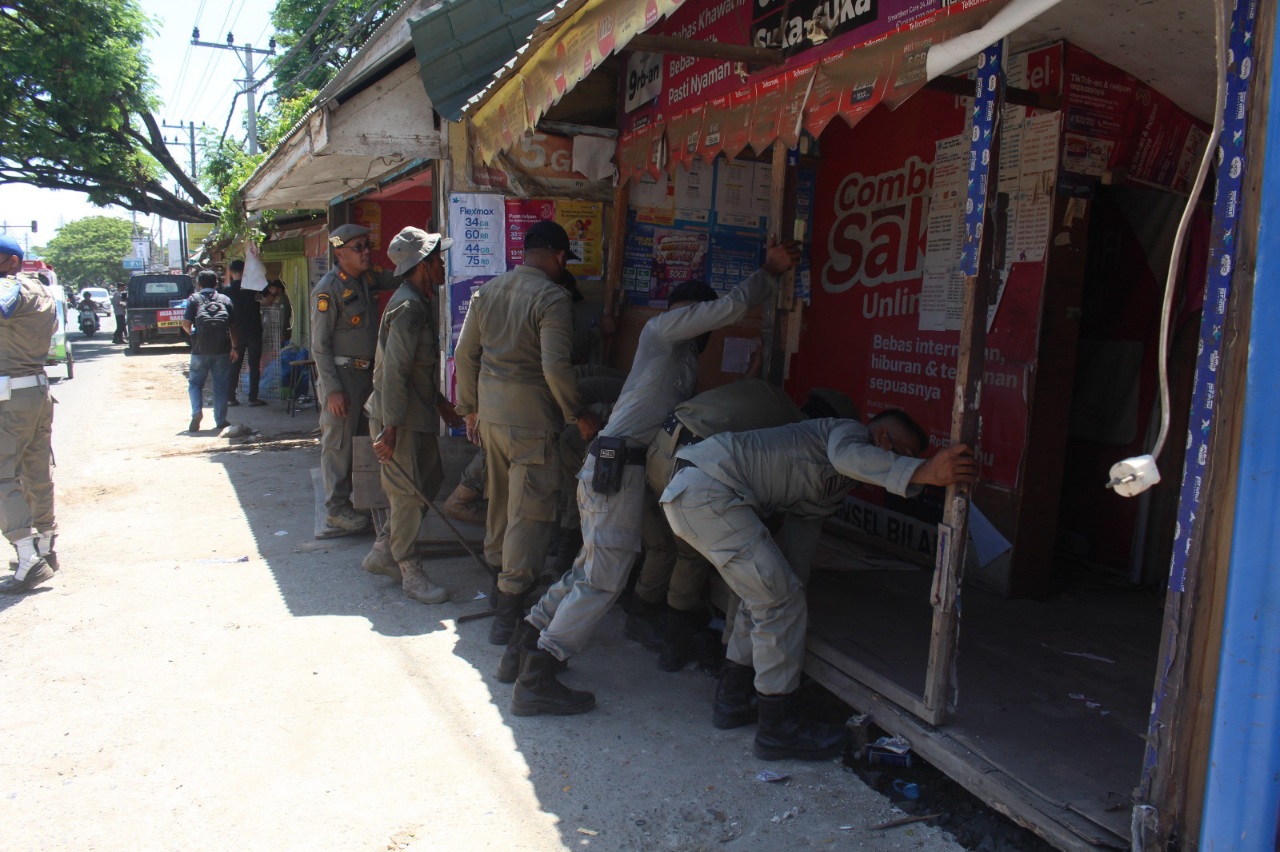“Petugas memotong kanopi yang melebihi batas, mengamankan material hasil bongkaran, serta membersihkan sisa-sisa material di lokasi,” kata Muhajir.